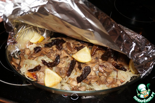 Закрываем фольгой и отправляем в духовку на 7-10 мин при 200 градусах.