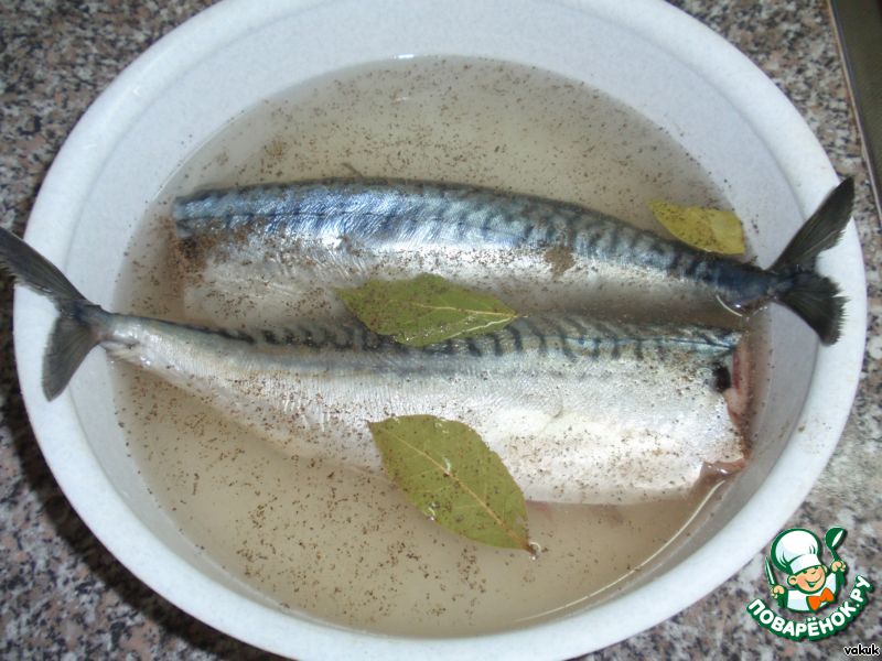 Чистим и моем рыбку и оставляем в маринаде (вода, соль, перец, лавровый лист)