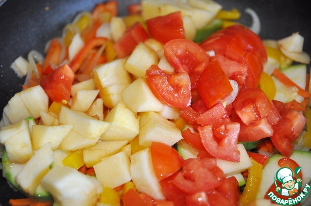 | Предлагаю Вам практически диетический рецепт рыбного рагу с овощами и яблоками. Готовится очень быстро, получается ароматно, сочно, вкусно и полезно. |