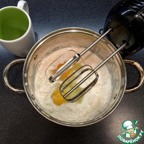 Молоко, яйца и муку взбиваем блендером. Хорошо взбиваем. Чем лучше мы это сделаем, тем пышнее будет наш пудинг и тем лучше он поднимается.