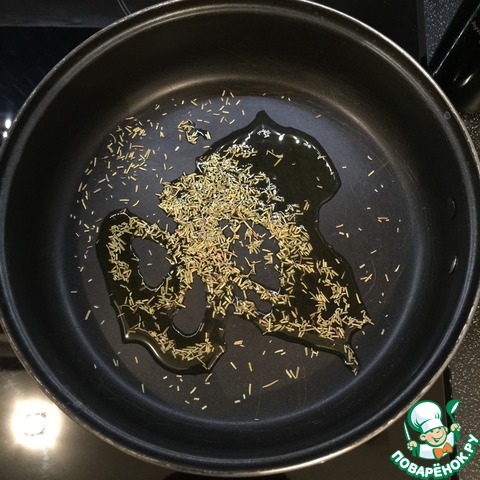 Данный рецепт рассчитан на сковороду в 28 см. Это ВАЖНО! Если у Вас форма меньше или больше-ориентируйтесь на это! Разогреваем сковороду и кладем туда розмарин, на среднем огне обжариваем минутку, чтобы он отдал маслу весь аромат!