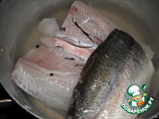 В кипящую воду со специями (соль, лавровый лист, перец горошком) добавила филе. На пару минут!!!!