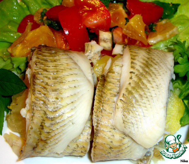 Рыба уже с гарниром, поэтому достаточно будет только салатика. Салат по рецепту sana swiss http://www.povarenok.ru/recipes/show/25480/ апельсиново-томатный.