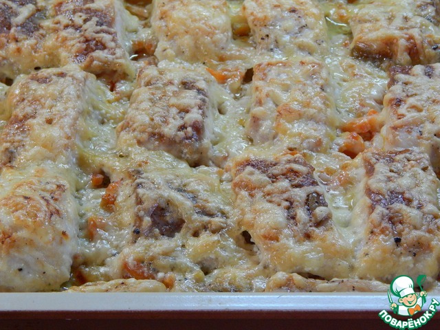 По истечении указанного времени нашу рыбку посыпаем оставшимся сыром и отправляем еще в духовку минут на 10-15.
