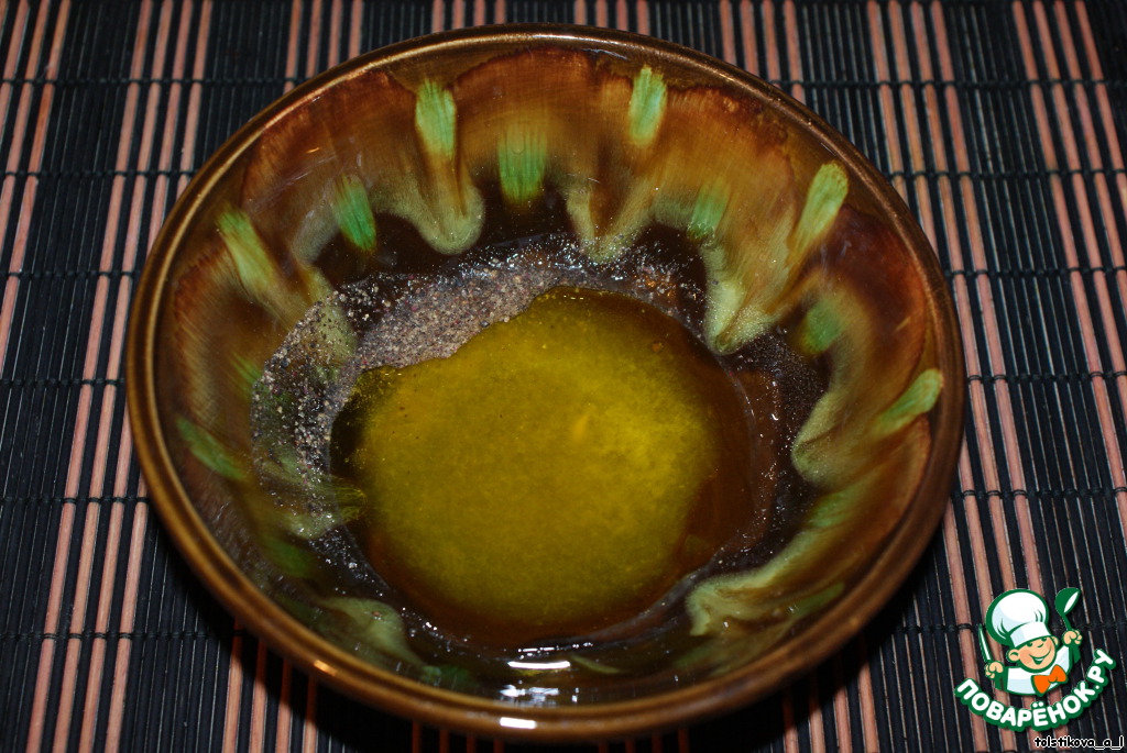 Для маринада потребуется: оливковое масло, сок лимона, соль, перец черный молотый. Все смешать.