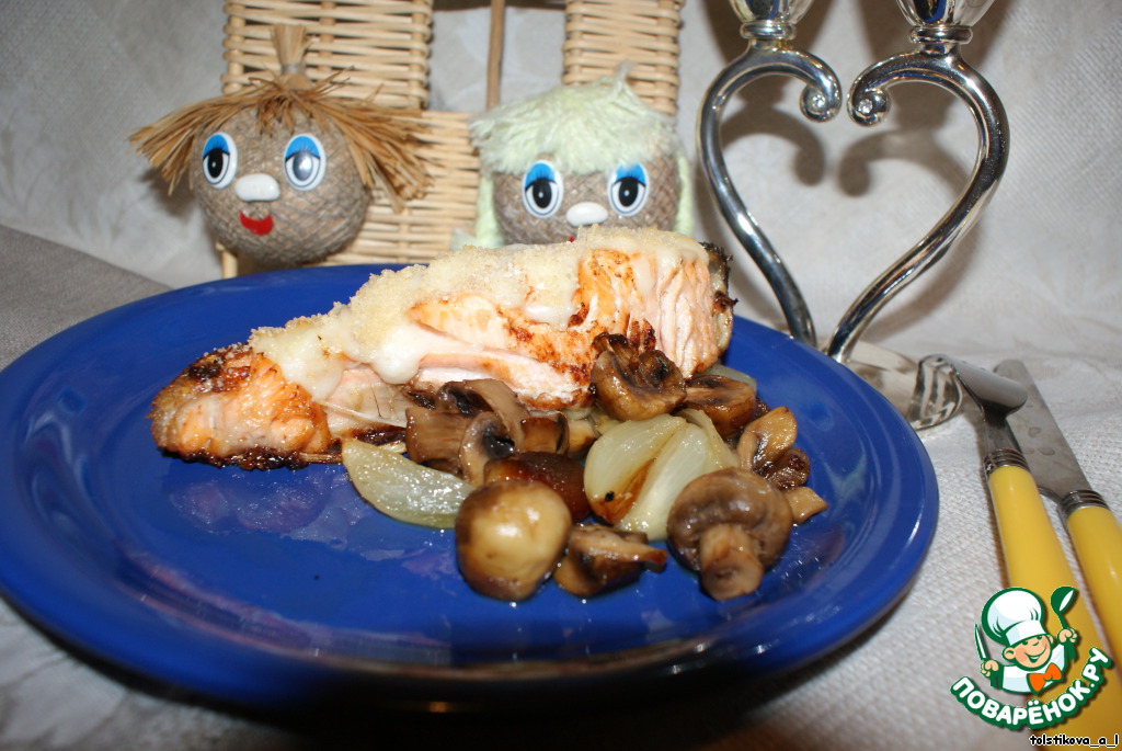 | В этом блюде я совместила самые любимые продукты нашей семьи - это нежнейшая семужка и шампиньоны. |