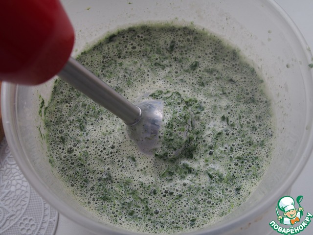В отдельной емкости соединить шпинат (если использовался замороженный, то его предварительно нужно разморозить и тщательно отжать всю жидкость), сливки, соль (1/2 ч. л.), сок половины лайма и яйца. Измельчить все блендером до однородной массы.
