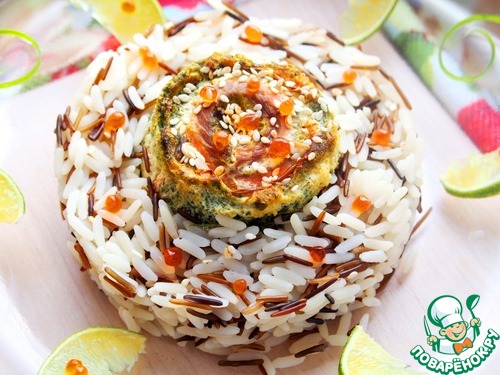 Готовый рис в пакетиках вынимаем из кастрюльки, даем стечься лишней воде и извлекаем рис, который подаем в качестве гарнира к мини-запеканкам из форели и шпината. Украсить по желанию.