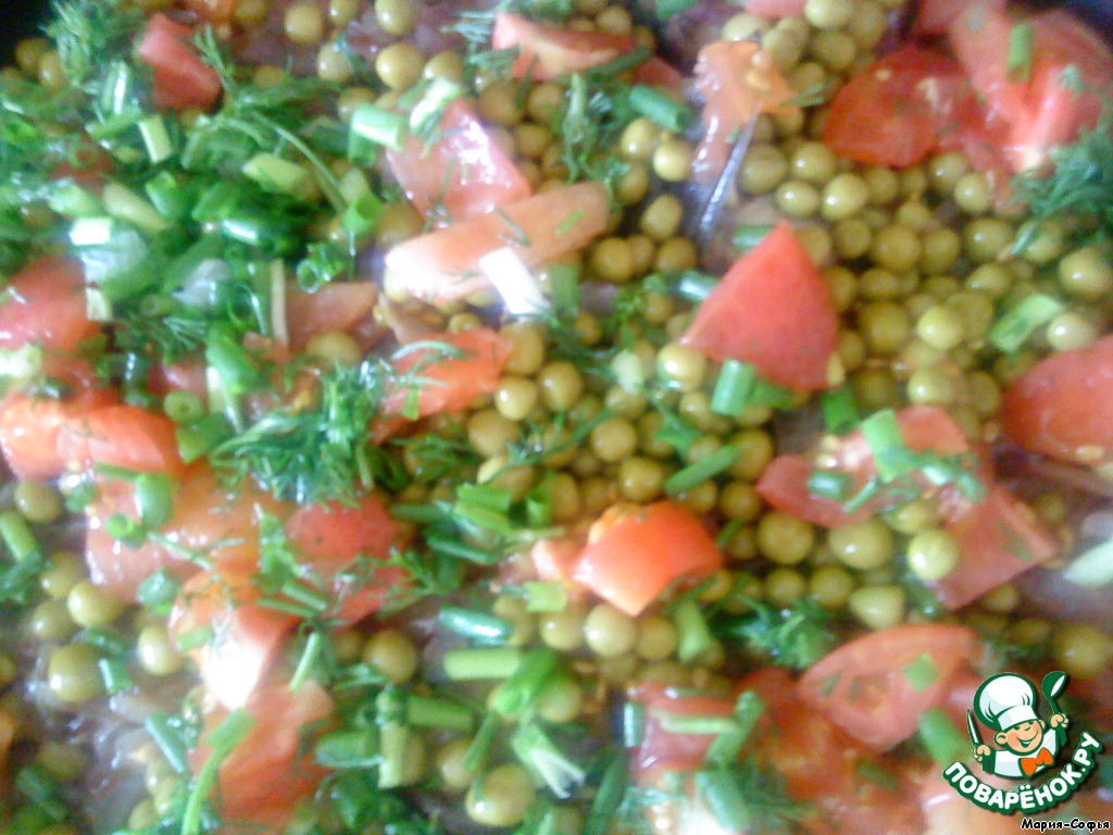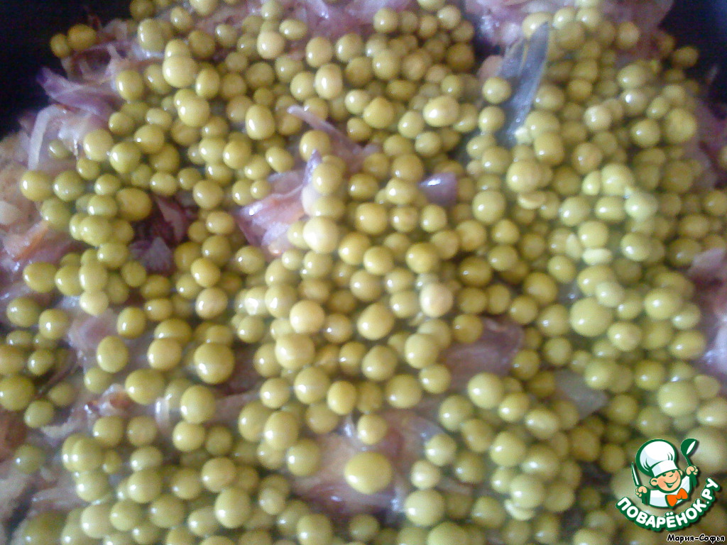 Затем зеленый горошек.