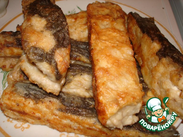 Обвалять каждый кусочек в муке и обжарить на раскаленном растительном масле до тех пор, пока рыба хорошо подрумянится с обеих сторон.