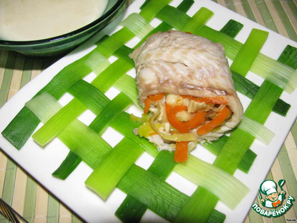 | Любителям сыра Бри посвящается. Нежные и легкие рулетики, которые тают во рту и пахнут не рыбой, а сыром. А симпатичная подача на циновке из лука-порея делает это блюдо гостевым. |