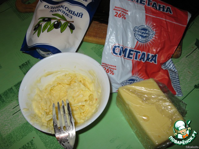 Приготовить "корочку" для рыбки: смешать 2 ст.ложки тертого сыра, 2 ст.ложки сетаны и 2 ст.ложки майонеза.