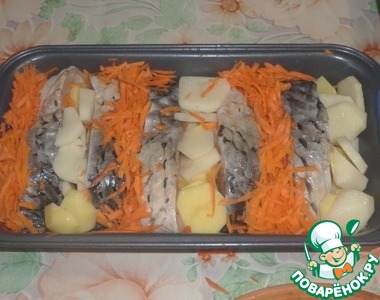 | Карп запеченный с овощами в молочно-яичной заливке. Нежная и ароматная рыба сразу с гарниром. |