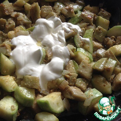 Добавляем в овощи 2-3 ст. л. сметаны, перемешиваем
