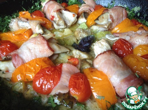 Рыба в беконе с овощами
