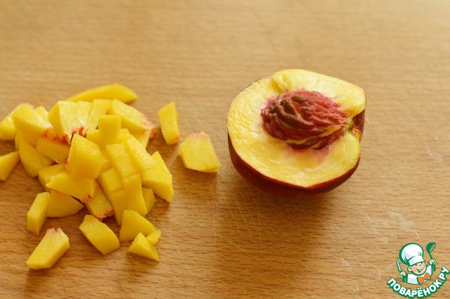 3. Нектарин раз резать, вынуть косточку, мякоть нарезать мелкими кубиками.
