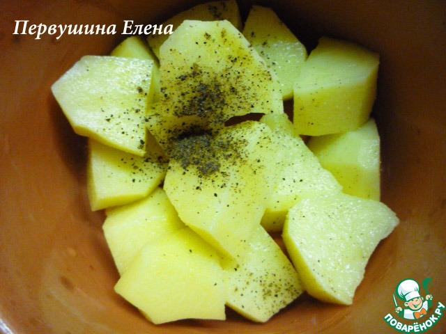 Картофель очищаем и кладем в горшочки. У меня 3 горшочка по 0,4л.