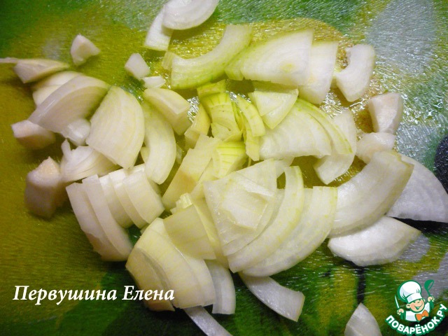 Лук очищаем и нарезаем четвертушками.