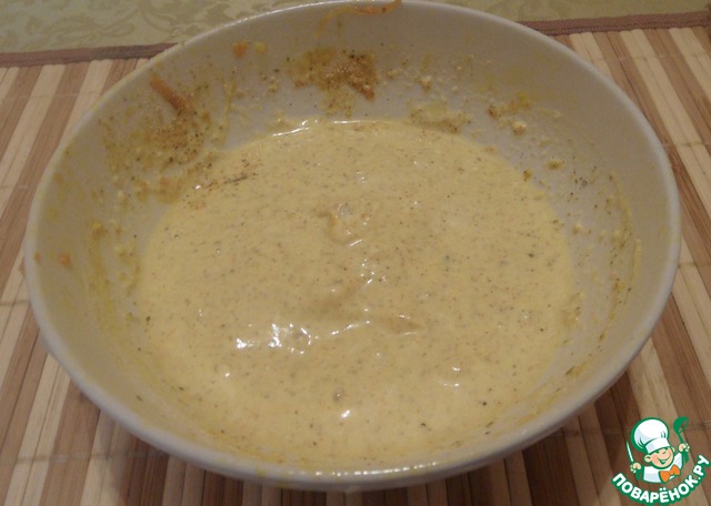 Приготовить соус. В оставшуюся панировку добавить майонез и все хорошо перемешать.