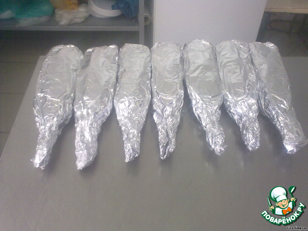 Выкладываем на решeтку гриль и начинаем жарить, как шашлык, с каждой стороны по минут 10 -15, по запаху услышите, когда будет готова, после чего разворачиваем, обрезаем некрасивые края и едим на фольге на тарелочке. К сожалению, нет фото, очень быстро съели рыбку.