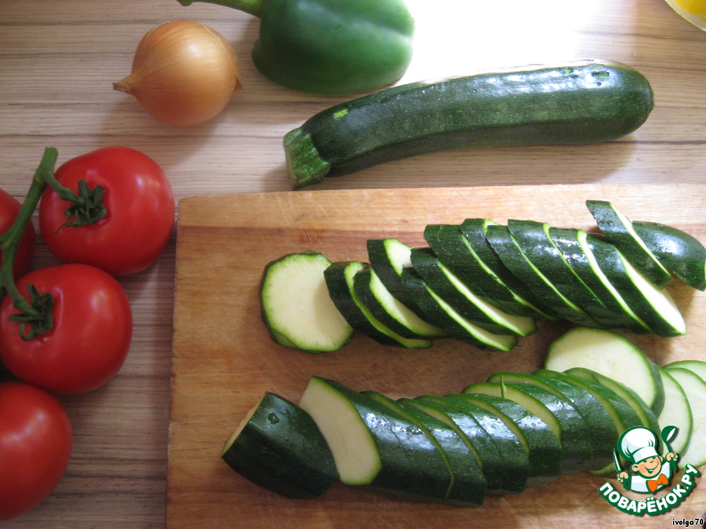 Подготавливаем овощи. Цуккини нарезать кружочками,
