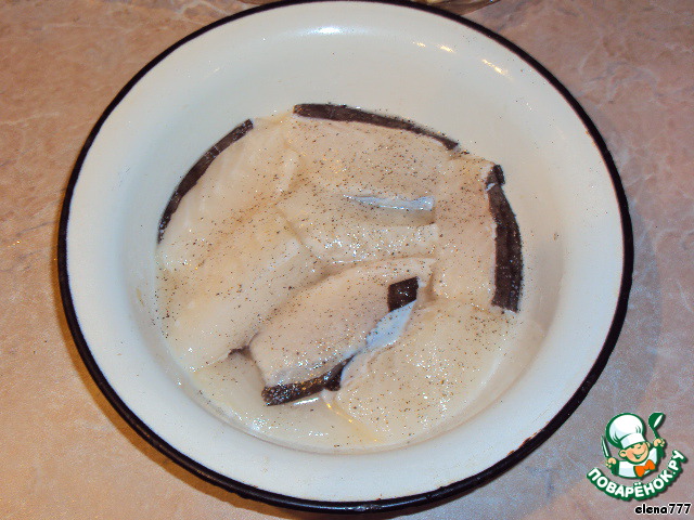 Рыбу можно взять любую, какая вам нравится, я взяла зубатку. Филе рыбы слегка посолить, поперчить и сбрызнуть соком лимона.
