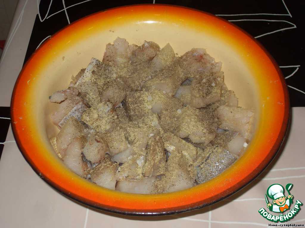 Рыбу почистить, разделать на филе с кожей и нарезать кубиками.