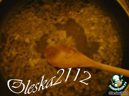 В сковороду с луком вливаем рыбный (или овощной) бульон (результат будет отличным в любом случае). Увариваем наш бульон до некоторого уменьшения объёма (где-то на треть). На этом этапе, если ваши домашние не любят лук, можно соус процедить (мои, к счастью, лук уважают).