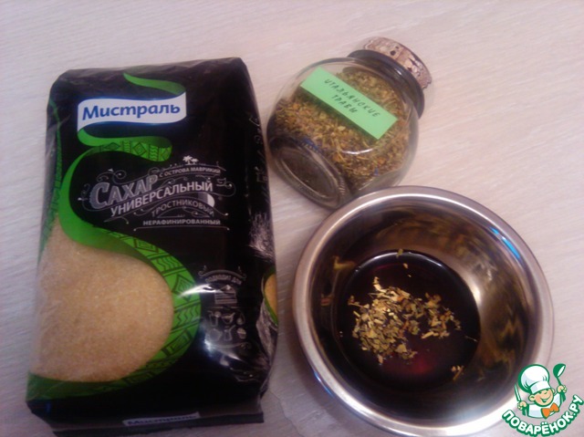 смешиваем сахар "Мистраль", соевый соус, сухие итальянские травки