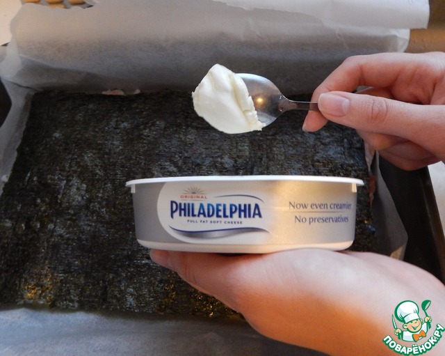 Слой сыра Филадельфия, у меня ушло 2\3 коробочки.