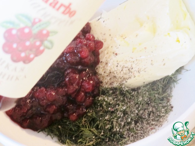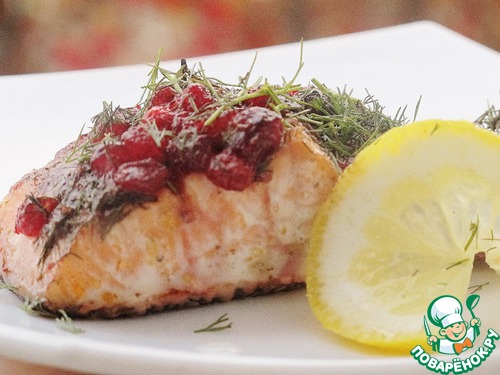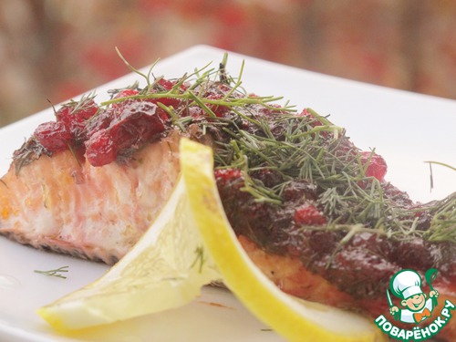 Запеченный лосось с укропом и брусничным соусом
