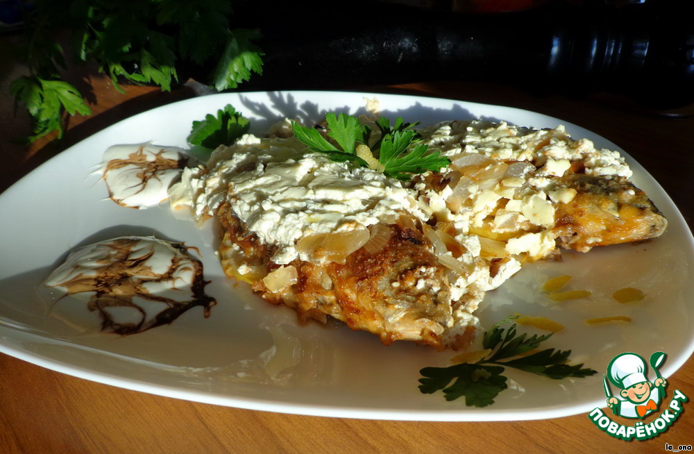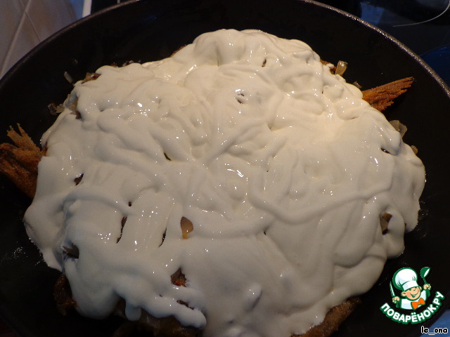 Залить всё это дело сметаной и отправить в духовку на 15-20 минут.