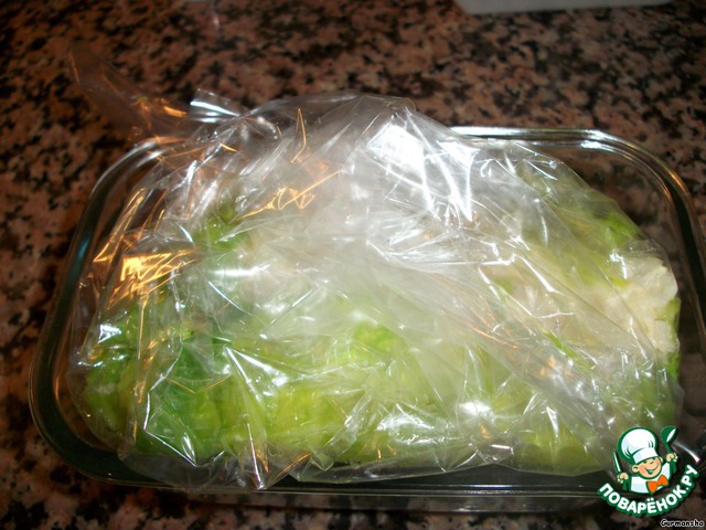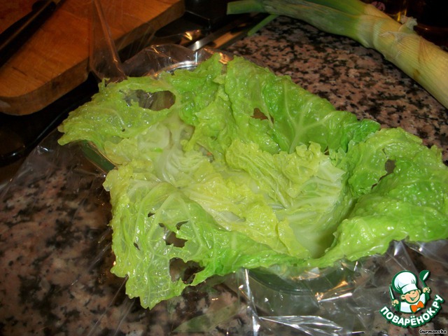 Отделим листья капусты, проварим их несколько минут в кипятке,но не переварим, так как нужно, чтобы хрустели.