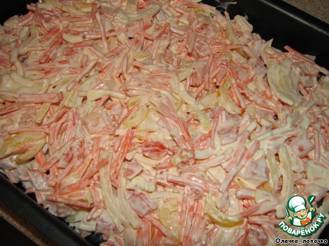 Овощи посолить, добавить майонез и хорошенько перемешать.