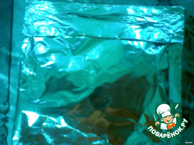 Теперь, порезала фольгу, положила на нее рыбку, я по 2 уложила - 1 порция, лимончик сверху и хорошо закрыть края.