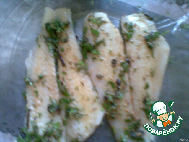 Рыбку вытерла насухо салфеткой, натерла маринадом с двух сторон. Т.к. рыбка очень нежная, не рискнула в маринатор, а просто оставила на 1 ч.