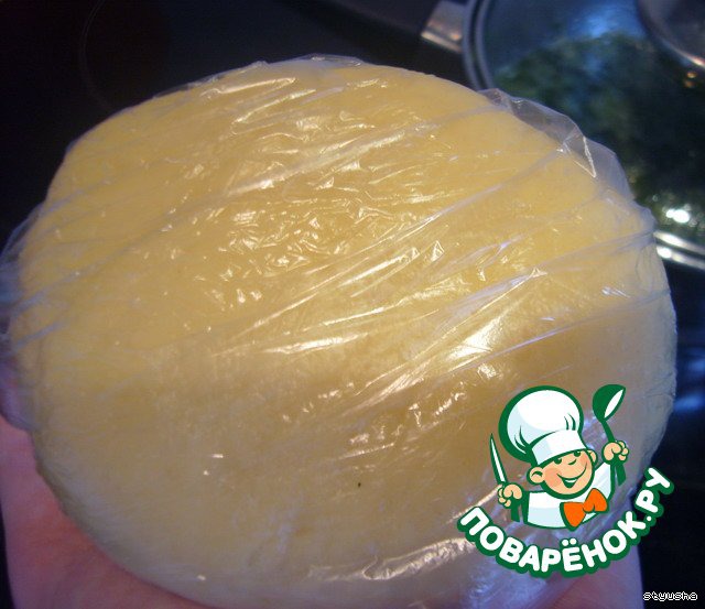 Консистенция - как на пельмени. Вымесить до гладкости. Минут 10-15 получается. Теста получается немного, но этого хватает. Убираем в холодильник минут на 30.