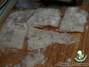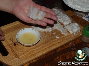 Кусочки, сбрызнутые соком, обваливаем в муке.