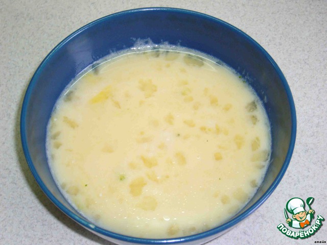 Все заливаем приготовленной яично-молочной смесью. Накрываем крышкой и готовим еще примерно 5 минут до схватывания яйца.