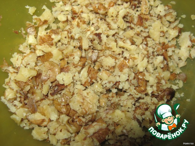 Орехи толчем вместе с чесноком, разбавляем водой.