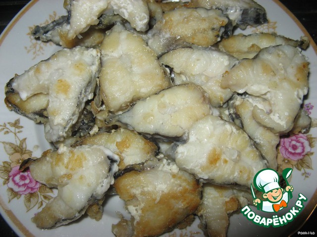 Рыбку моем, режем кусочками, обваливаем в муке и обжариваем на растительном масле.