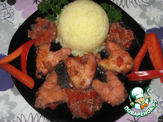 Готовую рыбку выкладываем на тарелку, подаем с рисом.