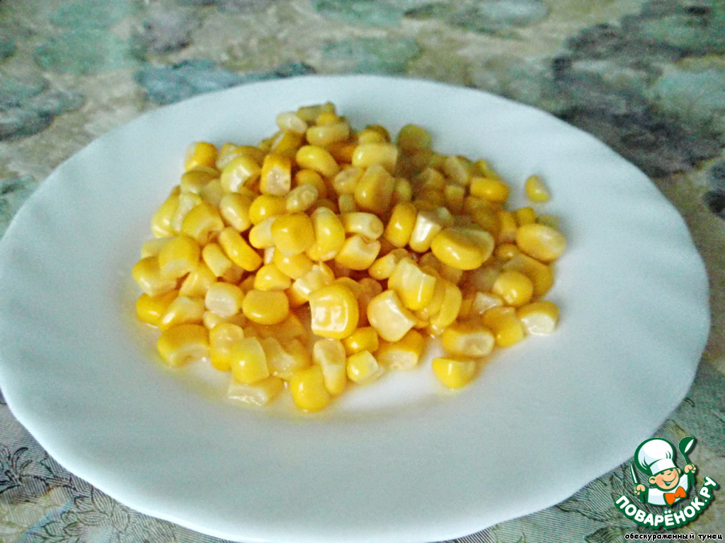 Разбиваем в шипящую смесь яйцо и, когда белок побелеет, добавляем кукурузу.