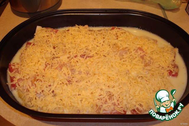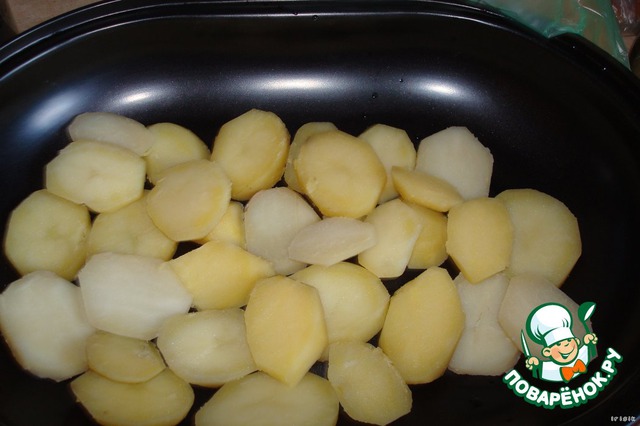 На картофель выкладываем рыбу. Рыбу посыпаем специями.