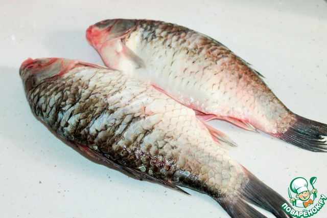 Карасей чистим, моем и обсушиваем. Берем карасей не маленьких. У меня 700 гр. и 800 гр.