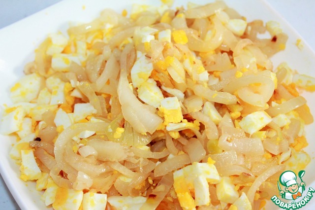 Перемешиваем лук и яйцо.