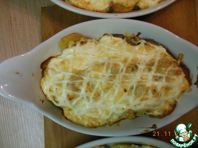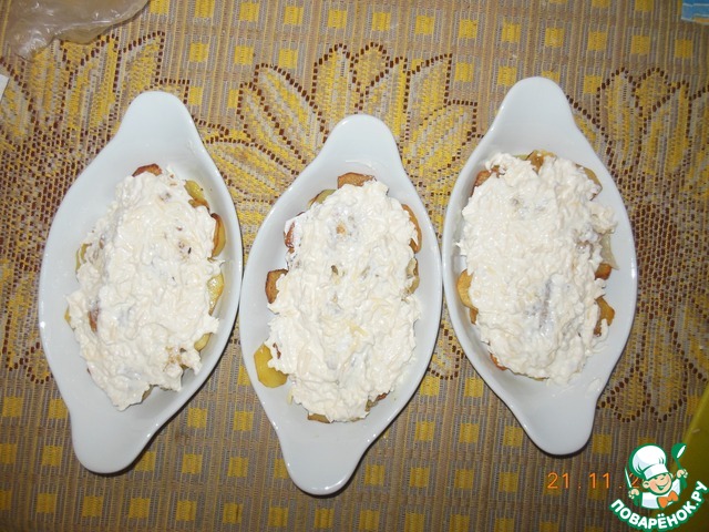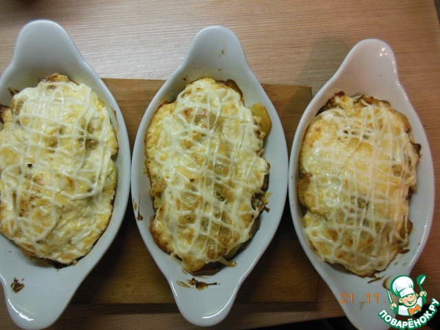 Далее выкладываем в порционные тарелочки нашу картошечку.