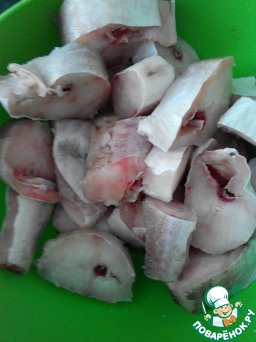 Рыбку помыть и почистить, обязательно обрезать все плавнички и черные пленки в брюшке. Нарезать сантиметровыми кусочками.