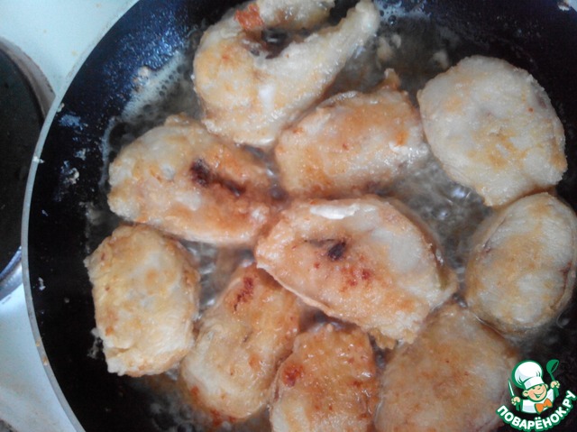 Обвалять в муке и слегка обжарить в раскаленном масле