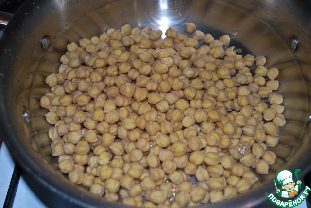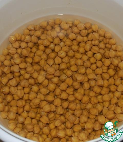 Начнем подготовку с нута. Его нужно замочить в холодной воде.